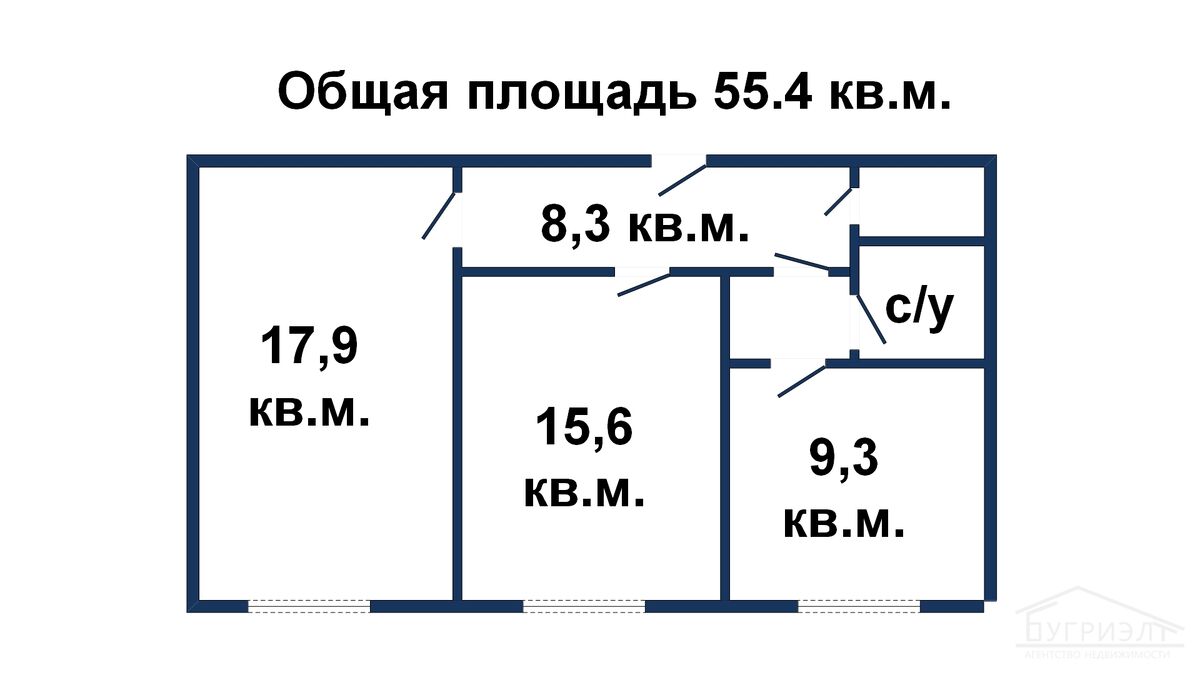 - общая: 55.4 м²