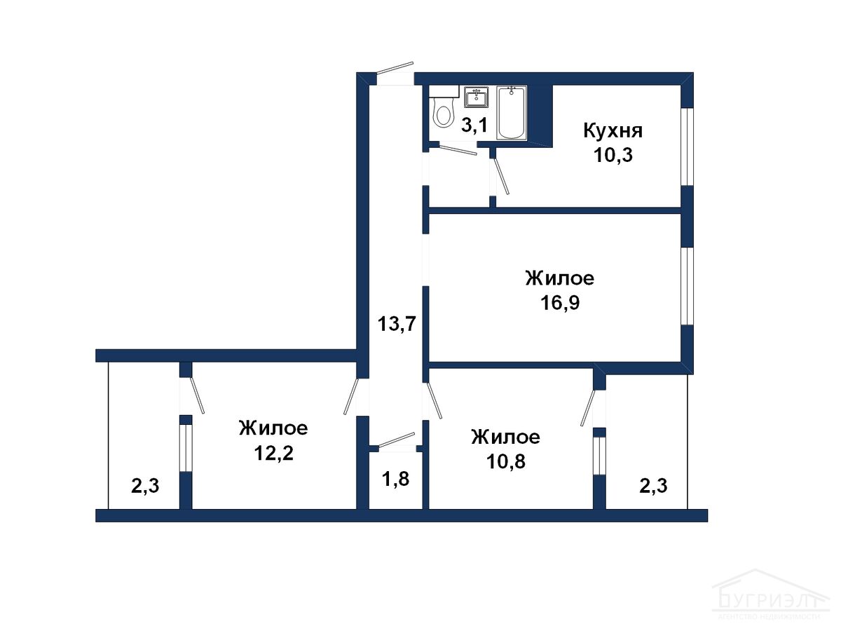 Жилая площадь: 68,8 кв.м.