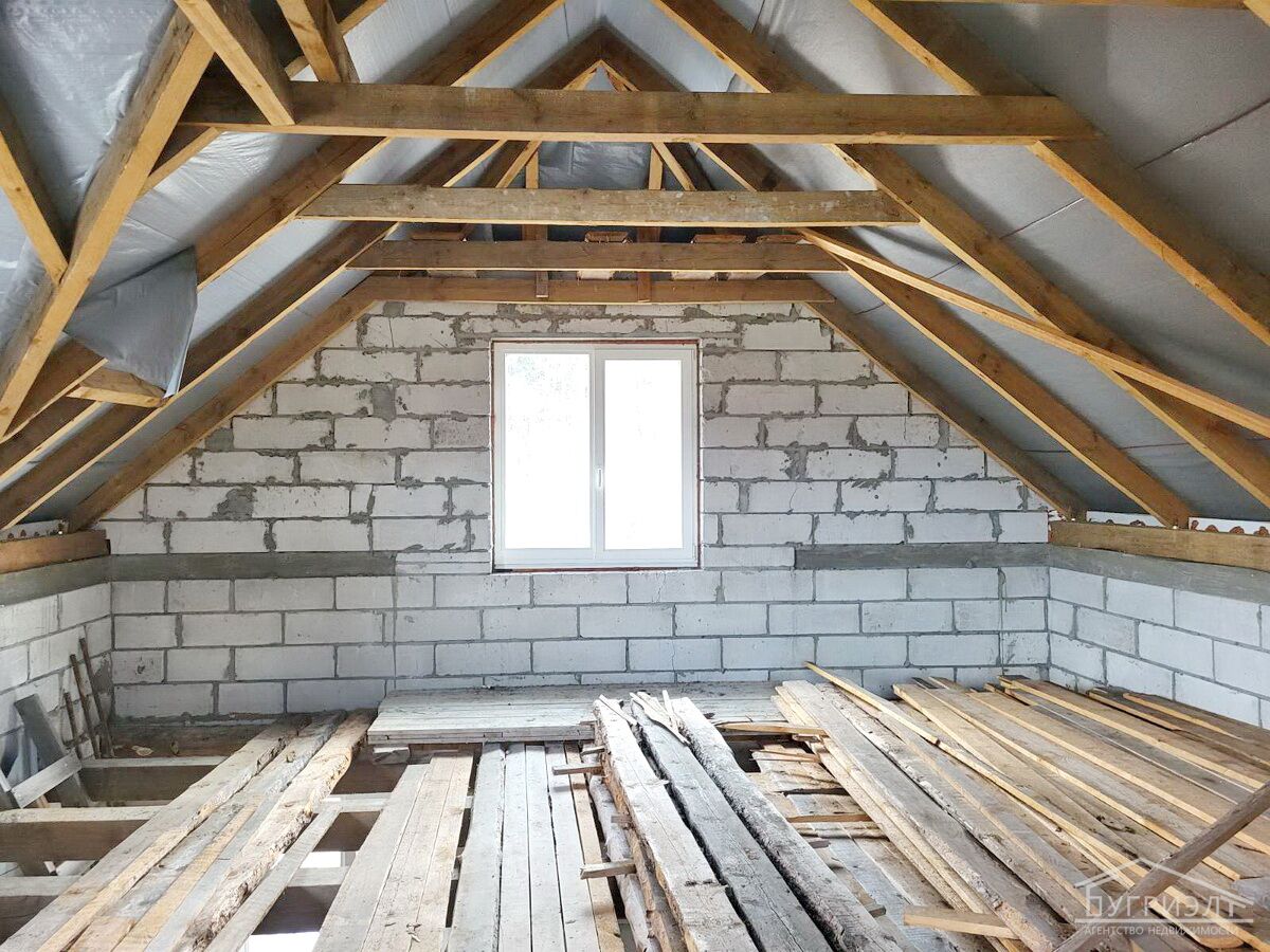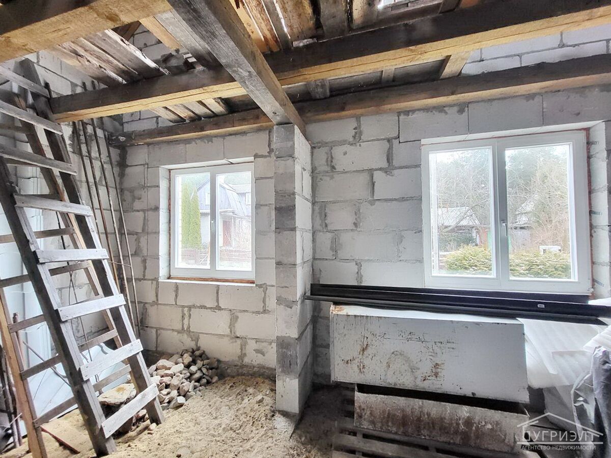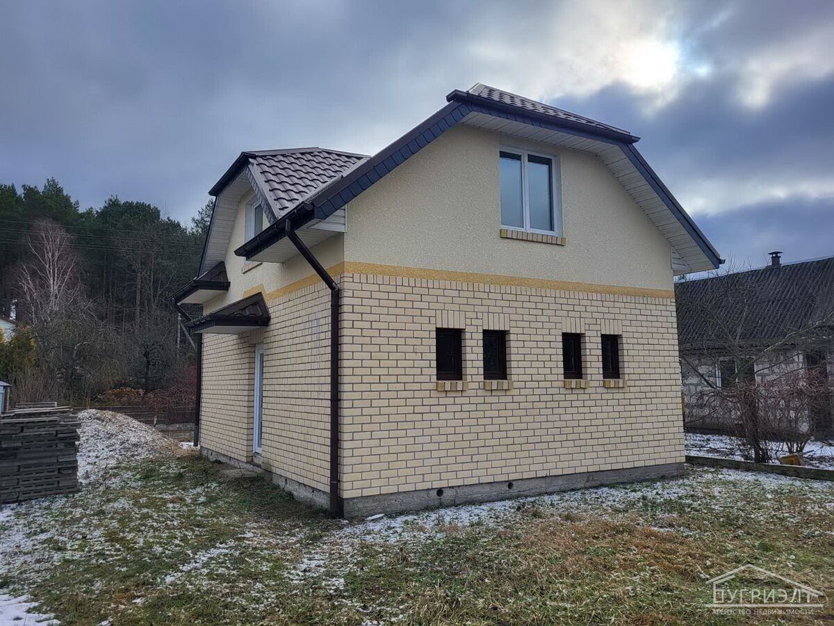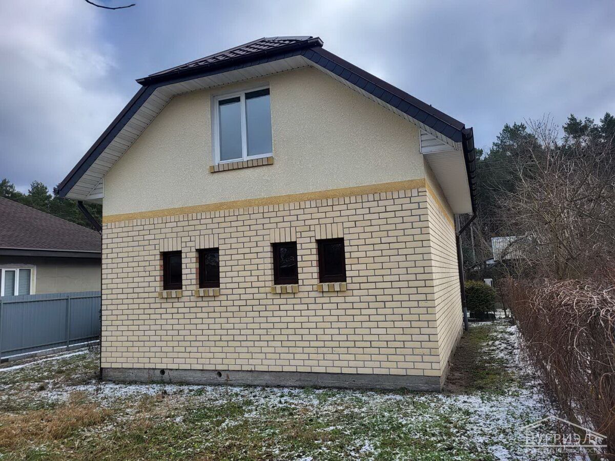 Стены из газосиликатных блоков, облицован кирпичем, основание дома - ленточный монолитный фундамент, мансардная крыша, кровля – металлочерепица. Общая площадь дома 93 кв.м. Имеется проект жилого дома с тремя жилыми комнатами.
