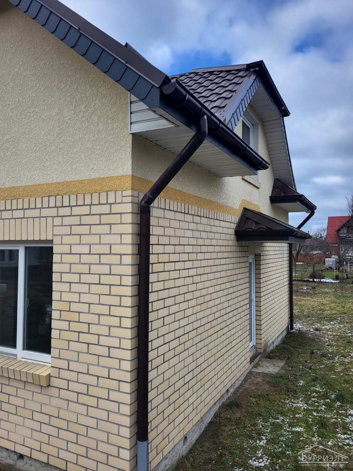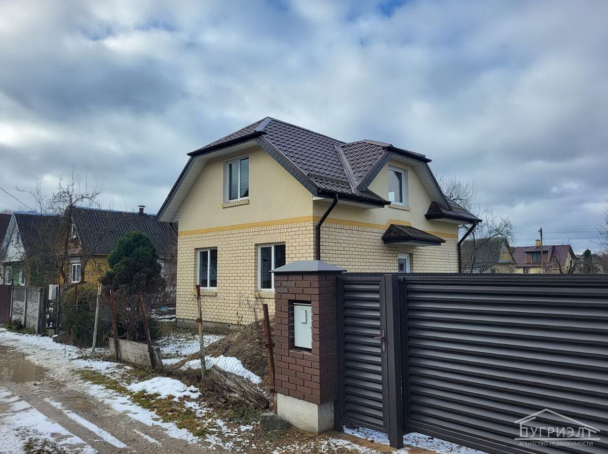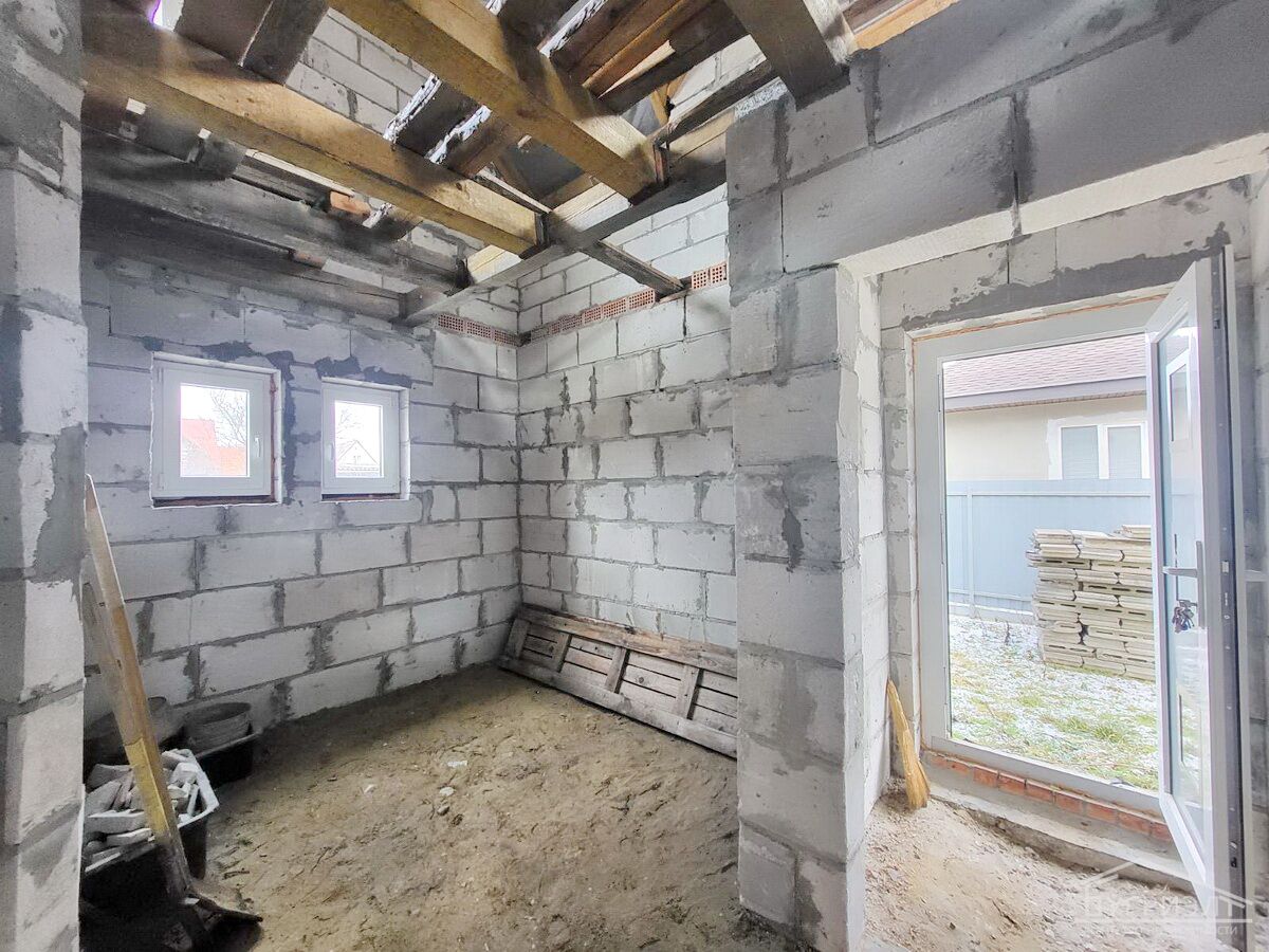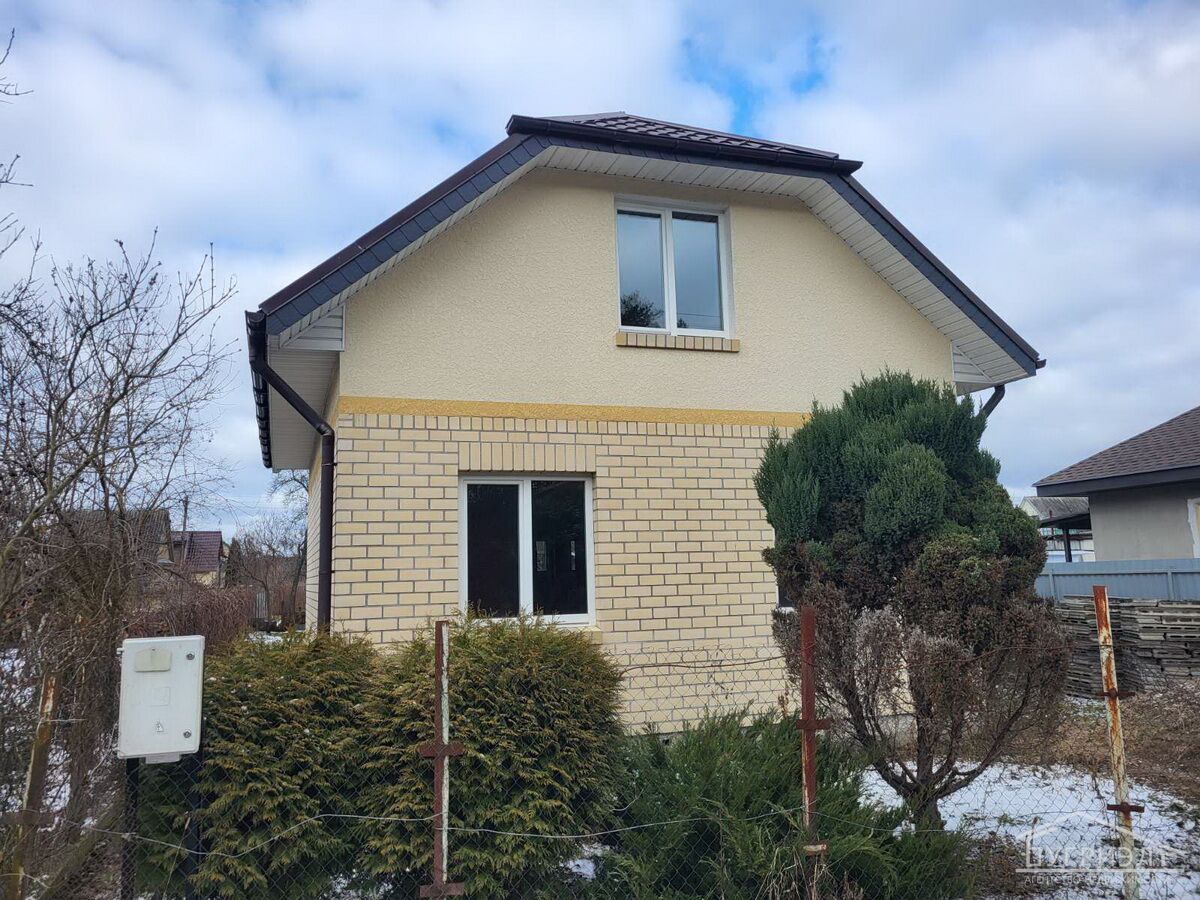 Стены из газосиликатных блоков, облицован кирпичем, основание дома - ленточный монолитный фундамент, мансардная крыша, кровля – металлочерепица. Общая площадь дома 93 кв.м. Имеется проект жилого дома с тремя жилыми комнатами.