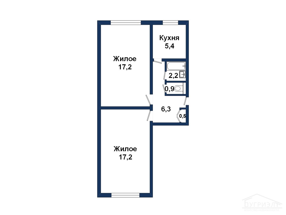 - Жилая площадь: 34,4 кв.м.