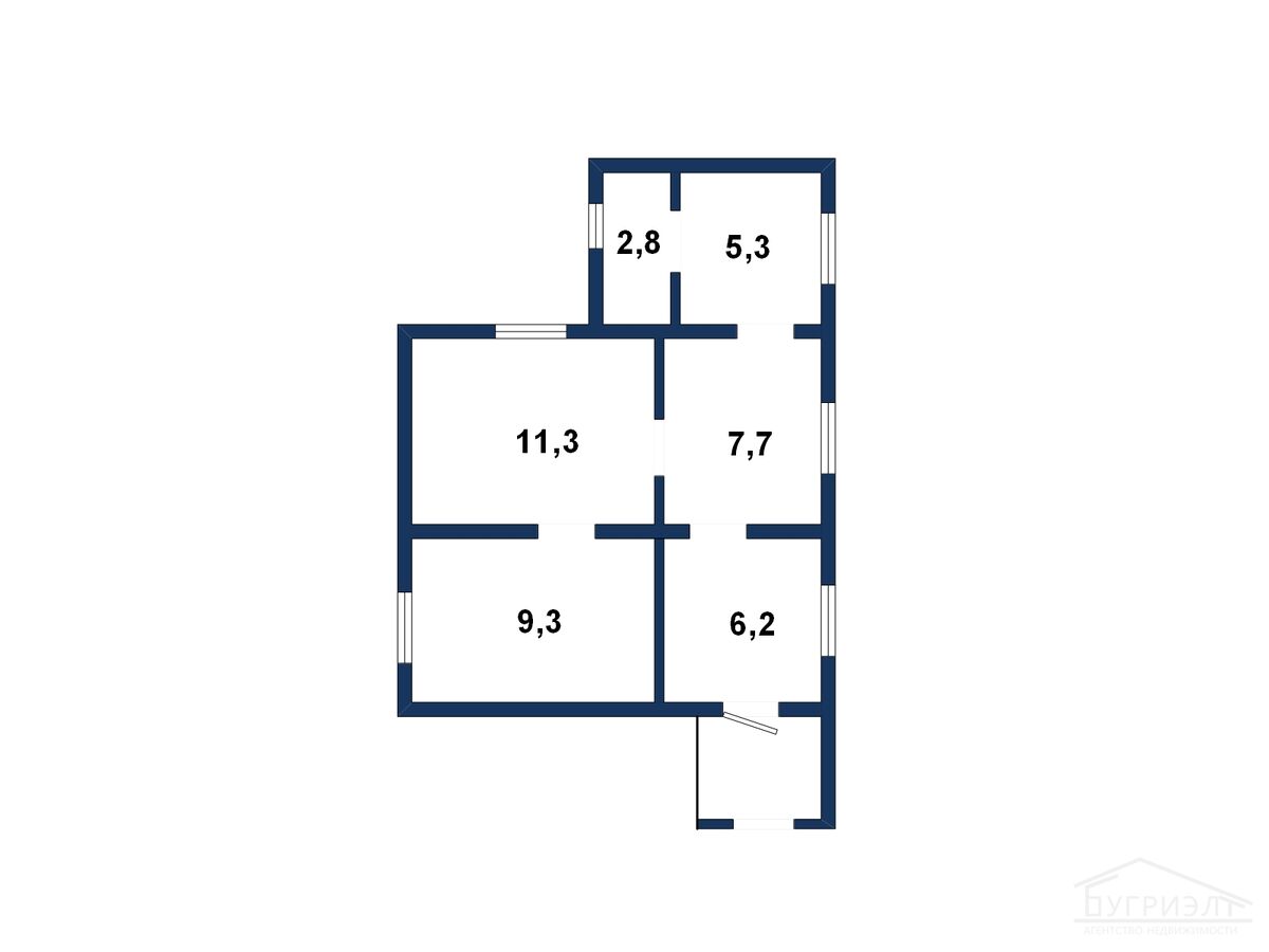 - кухня: 7.7 м²