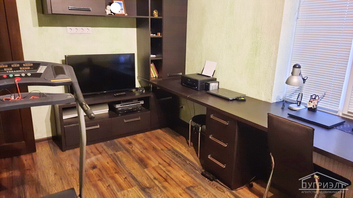 Потолки - комбинированные (натяжной в гостиной и гипсокартон), высотой 2,7 м, пол - плитка и ламинат, стены - декоративный камень.