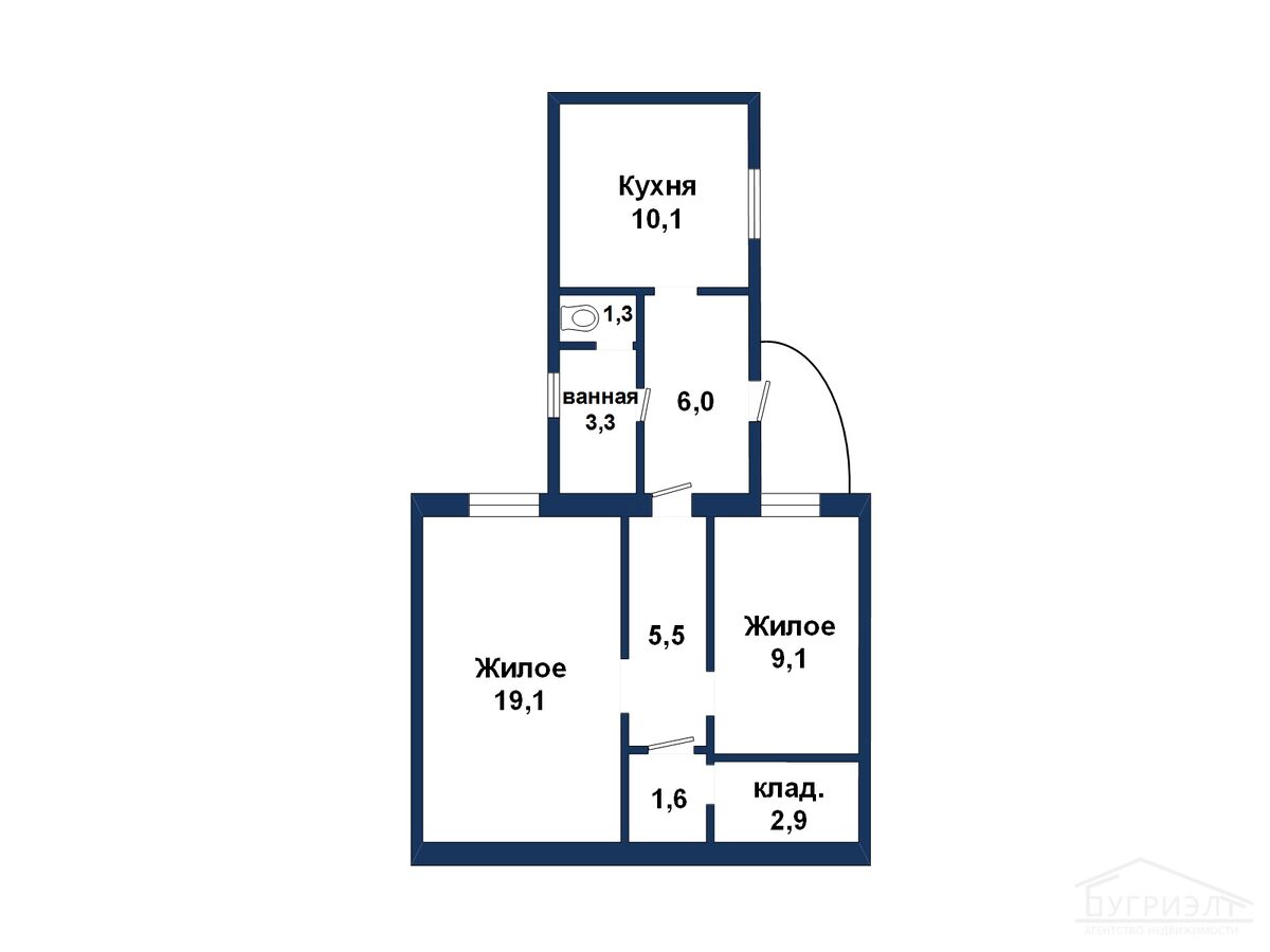 - кухня: 10.1 м²