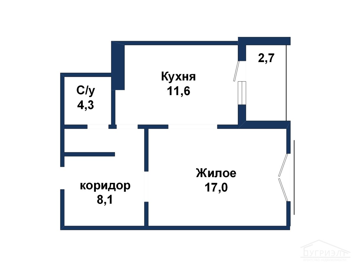 - кухня: 11.6 м²