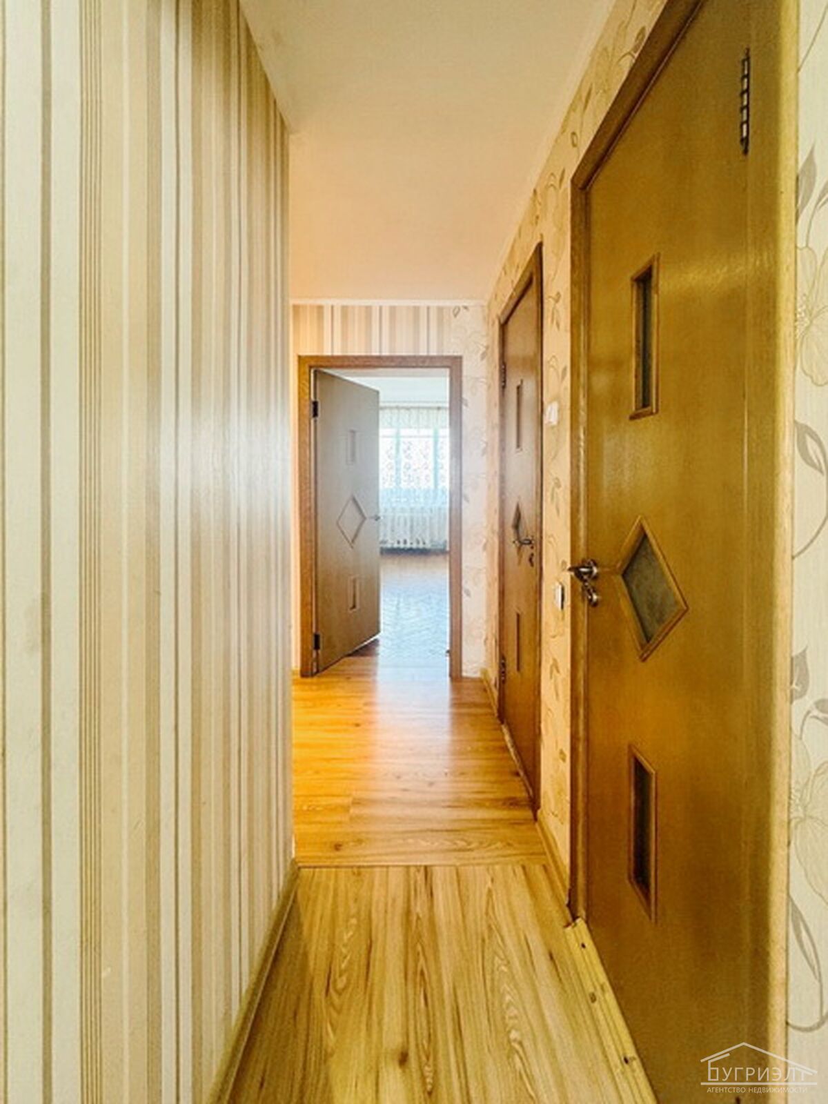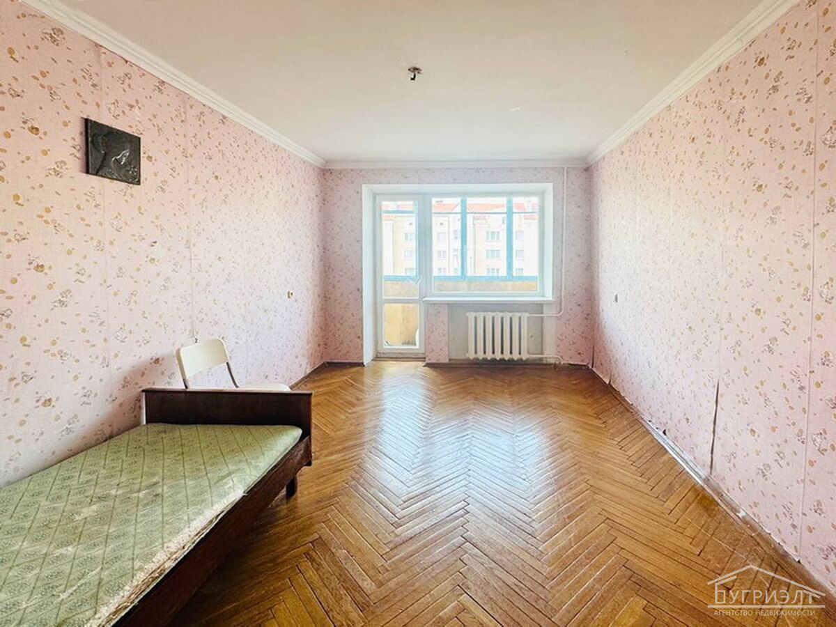 Просторная трехкомнатная квартира в центральной части города Пинска, ул. Первомайская. Квартира расположена на 4-м этаже кирпичного 5-ти этажного дома, 1973 года постройки. Общая площадь квартиры с лоджиями составляет 64,8 м2, жилая площадь 43,4 м2, кухня - 7 м2.