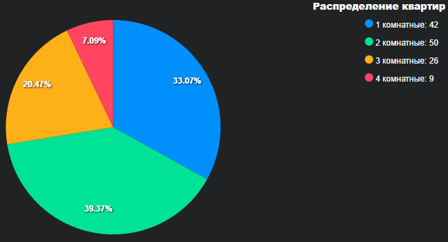Если говорим про структуру сделок, то тут отмечаем ощутимый рост доли четырехкомнатных квартир до 7% объема рынка, за счет уменьшения количества однокомнатных квартир с 41% до 33%.