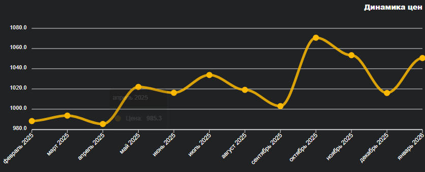 Что касается средних цен в городе, то тут мы видим, что стоимость квадрата, даже на фоне заметного проседания рынка, показала возврат к траектории роста, что не очень логически обосновывается, но цифры вещь упрямая. По результатам января средний метр в городе добавил 34$, и как итог месяца мы видим 1050$ за квадрат.