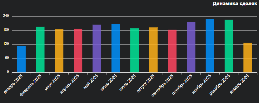 Для сравнения в ноябре было 229 сделок, а вот в декабре прошлого года было заключено 195 сделок.